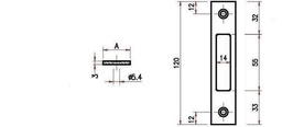 Sluitplaat RVS voor dagslot en rolslot met doorn 15 en23mm, RVS 22x2,5x124mm