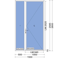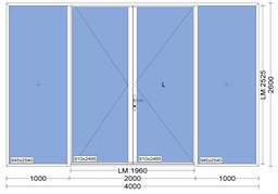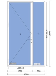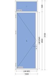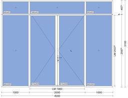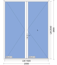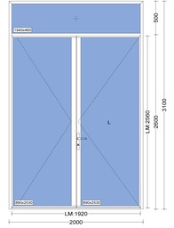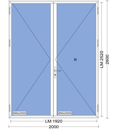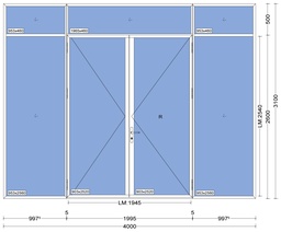 Materialen voor referentie element RP-ISO-Fineline, dubbele buitendraaiende deur 2600mm x 2000mm met bovenlicht met haakse glaslat en omlopend kozijnprofiel, PE = VE = 1 Set, PE = VE = 1 Set